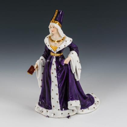 Dame im Renaissancegewand mit Hennin und Buch