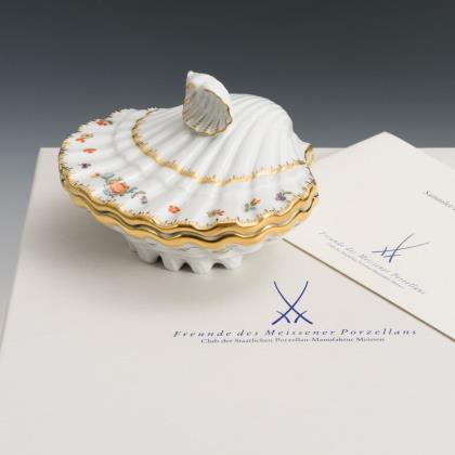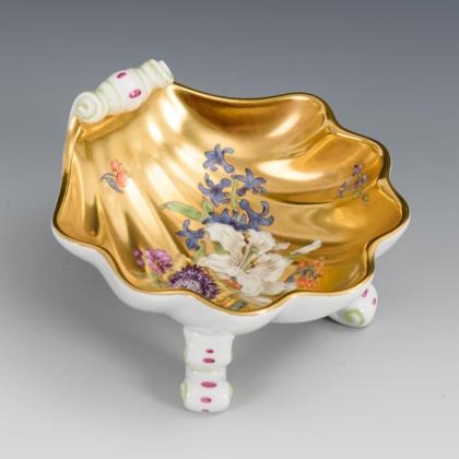Muschelschale mit goldenem Schalenfond und Blumenmalerei