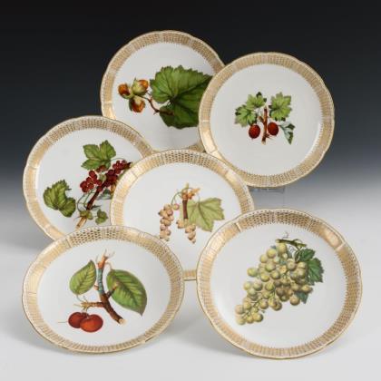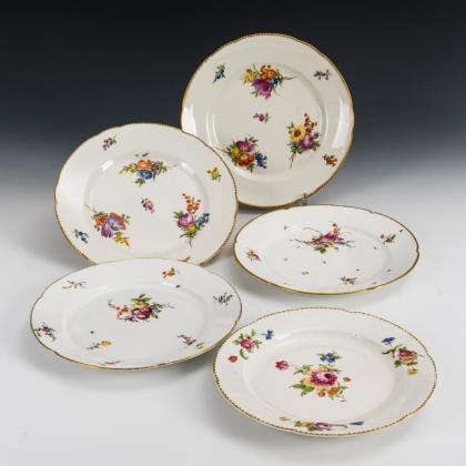 Sechspassige Speiseteller mit Blumenmalerei und Goldkante