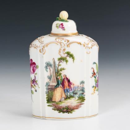Teedose mit Watteaumalerei