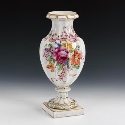 Stark kannelierte Balustervase mit Kraterhals und Rundfuß, auf Quadratplinthe