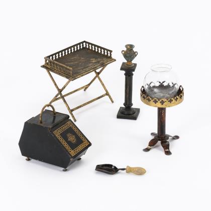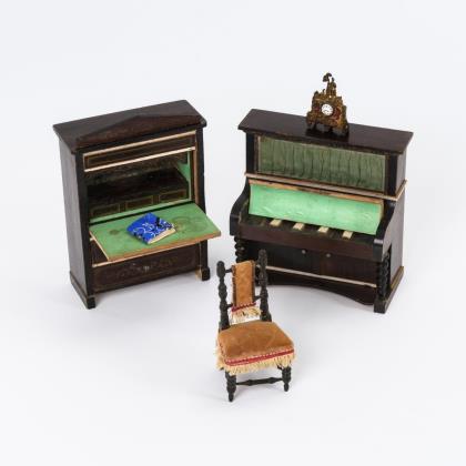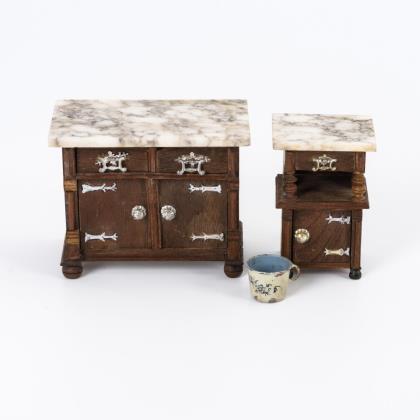 2 Gründerzeit-Möbel mit Zinnbeschlägen für die Puppenstube