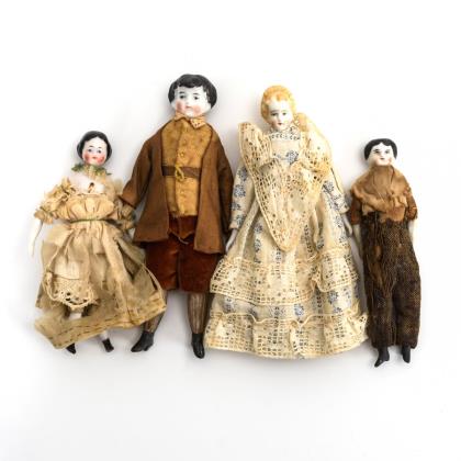 Brustkopfpüppchen: Dame, 2 Knaben und 1 Mädchen. Alle originalbekleidet