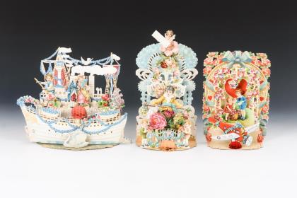 Außergewöhnliche Valentins-Aufsteller für den englischen oder amerikanischen Markt. Unterschiedlich bezeichnet: "A token of affection", "To my Valentine", "Have kindly thoughts of me"