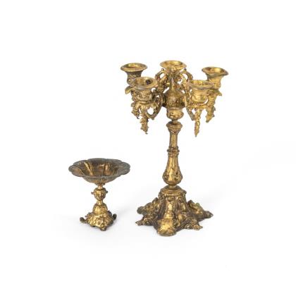 5-flammiger Kandelaber und blütenförmige Schale mit dreipassigem Fuß