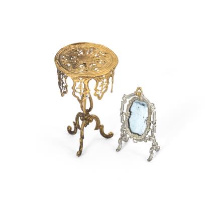 Seltener Goldblech-Standspiegel für die Puppenstube