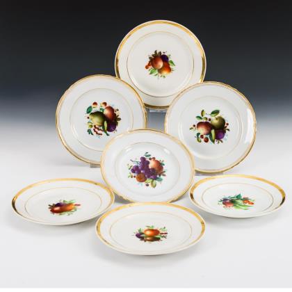 Form "Flora Danica" mit Zackenrand. Im Spiegel ein Blumenbukett mit Frucht