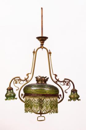 3-flammige Jugendstil-Deckenlampe mit Glasperlenbehang
