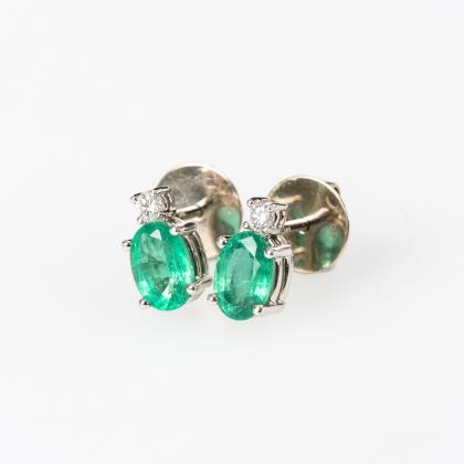 Ohrsteckerpaar mit Smaragd und Brillant