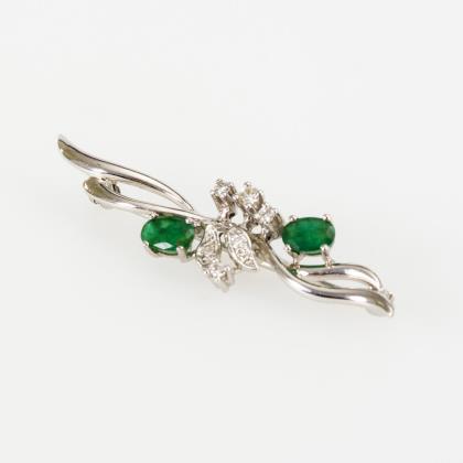 Brosche mit Brillanten, Smaragden und Diamanten