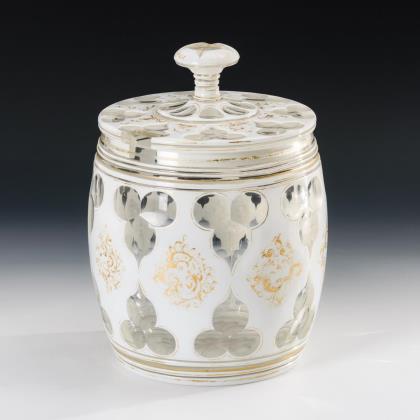Vierpassige Kuppa und Deckel mit Kugelknauf, wabenfacettierter Balusterschaft mit Scheibennodi
