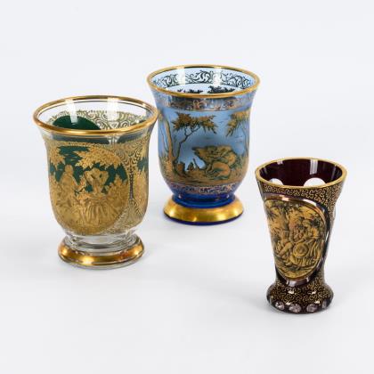 4 Römer mit Emailmalerei