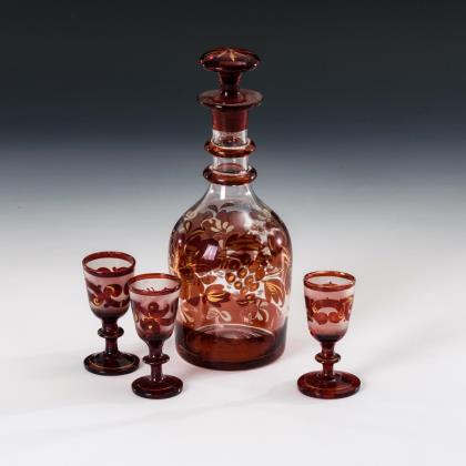 Karaffe und 3 Likörgläser