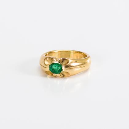 Massiver, breiter Bandring mit krappengefasstem Smaragd