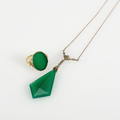 Ring und Collier mit Grünachat