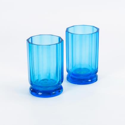 Zehnfach facettierte, zylindrische Vasen mit facettiertem Fuß, ausgekugelter Abriss