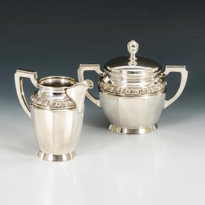 Jugendstil-Zucker-Sahne-Set auf Tablett