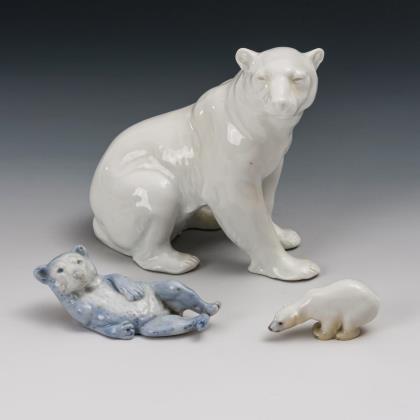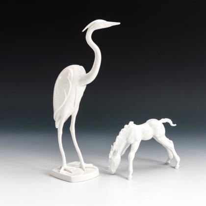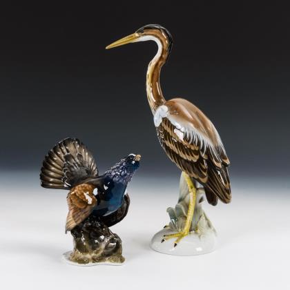 1x Reiher, Modell-Nr. H 212, Entwurf von Elfriede Reichel-Drechsler, 1957 (H 33,5 cm). / 1x ohne Modell-Nr. (sonst A 1269), Entwurf von Willi Münch-Khe, 1931 (H 11 cm)