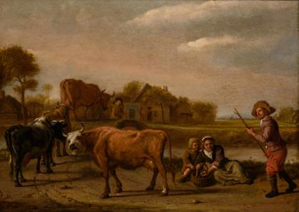 Landschaftsmaler 18. Jh.: Landschaft mit Vieh und zwei sich prügelnden Männern