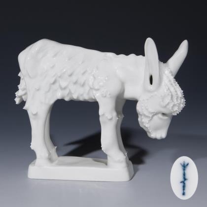 Modell von Judith Speer 1929. Reliefiertes Weißporzellan. Kopf und Ohren hohl gearbeitet. Zeptermarke