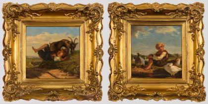 Genremaler um 1840: Zwei Gemälde mit Hirtenknaben