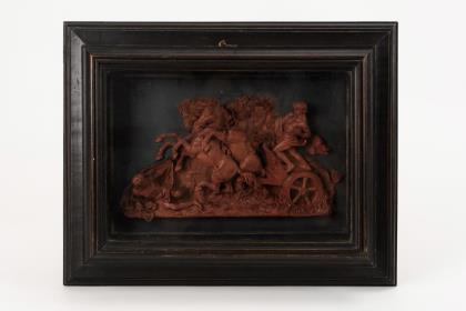 Wachsbossierung: Dramatische Szene mit einem Streitwagen (Pelops und Oinomaos?)
