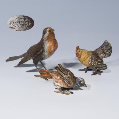 Wiener Bronzen: Rotkehlchen, Huhn und Rotschwänzchen