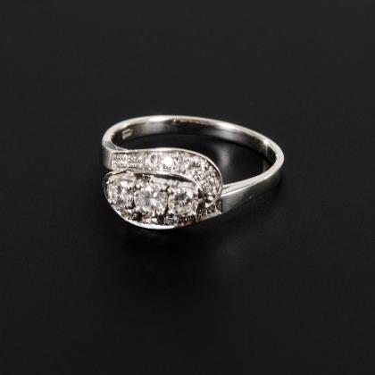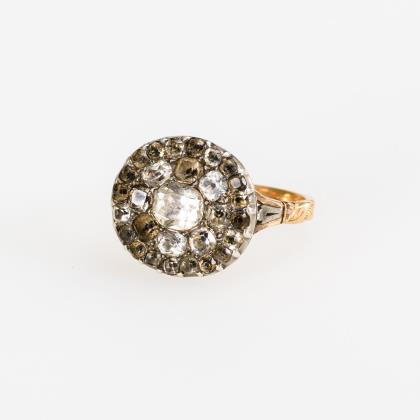 Art-déco-Ring mit Altschliff-Brillanten und Diamantrosen