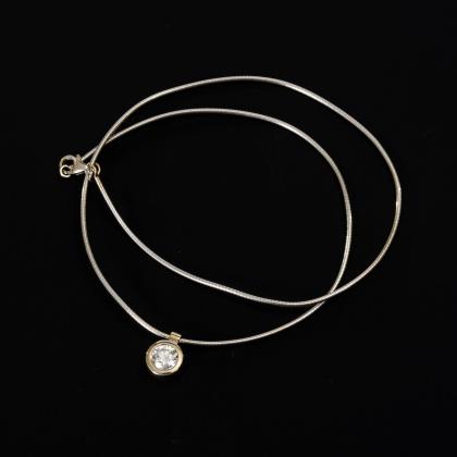 Zargengefasster feiner Brillant an Collierkette mit Karabinerschloss