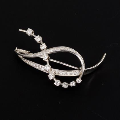 Brosche mit 28 Brillanten und 11 eingelassenen Diamanten. Schiebehaken