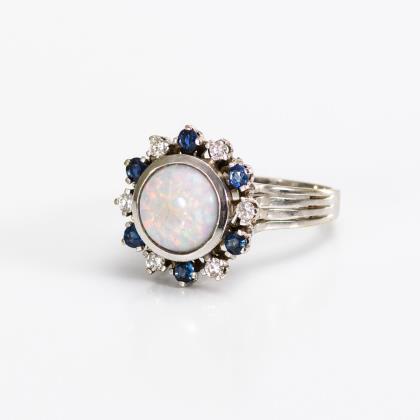 Entouragering mit Opal, Saphiren und Brillanten