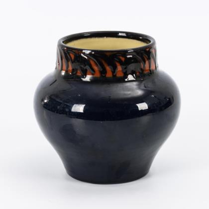 Gedrungene Balusterfom mit zylindrischem Hals, umlaufend florale Halsborte