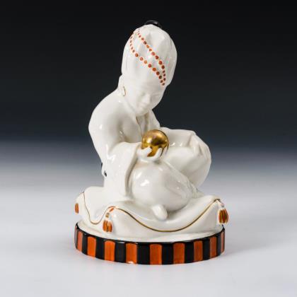 Orientale mit goldener Kugel, im Schneidersitz auf Rundsockel
