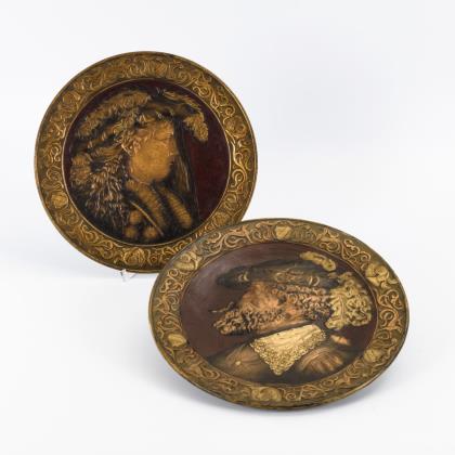 Reliefteller im Renaissance-Stil mit männlichem und weiblichem Profilkopf, mit Aufhängung