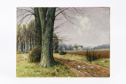 Ungerahmtes Fliesenbild mit Feldlandschaft und Architektur