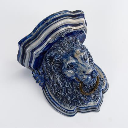 Geschweifte Konsole mit teilplastischem Löwenkopf und Bronzering