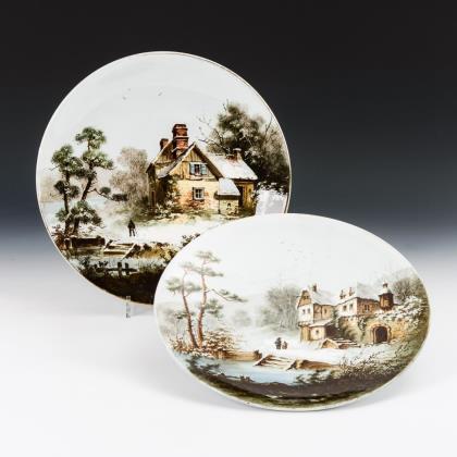 Winterlandschaften mit ländlicher Architektur und Staffagefiguren, mit Aufhängung