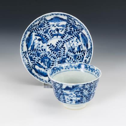 Stilisierte Blätter und Berglandschaft im Rapport auf Tasse und Koppchen