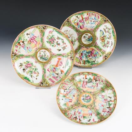 3 Teller Famille rose mit Frauenszenen
