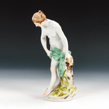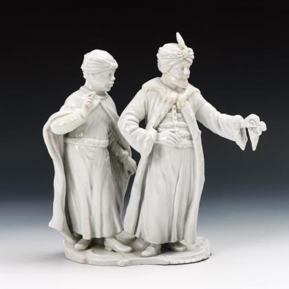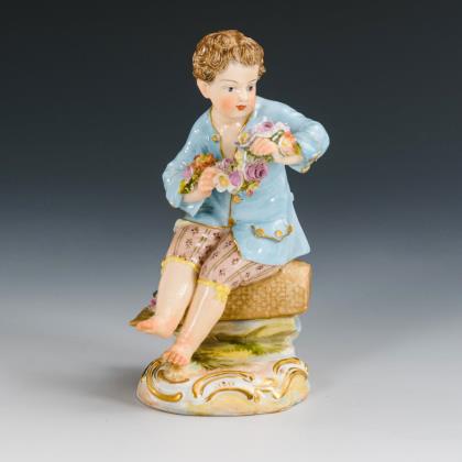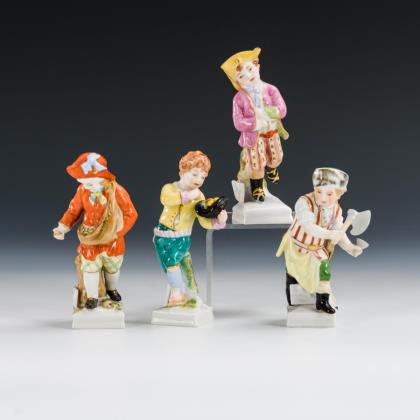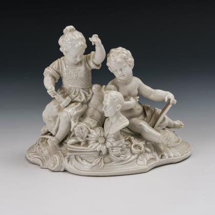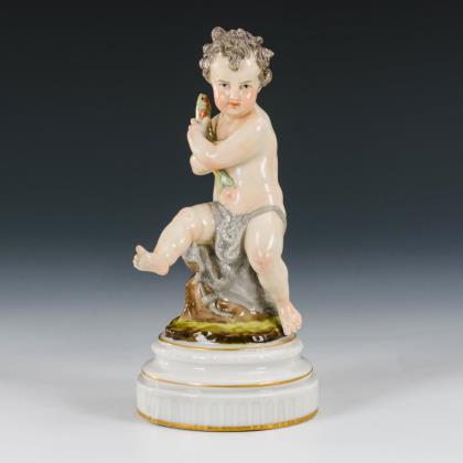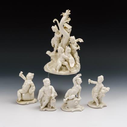 Gruppe "Putten beim Vogelfang" (H 21,5 cm) sowie Putto als Bacchus, Putto als Faun, Putto als Ceres, Putto als Winter (H 10-12 cm)