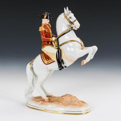 Auf einem Ovalsockel mit einem Schimmel die Figur der Courbette ausführender