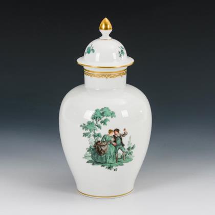 Dose mit kupfergrüner Watteaumalerei