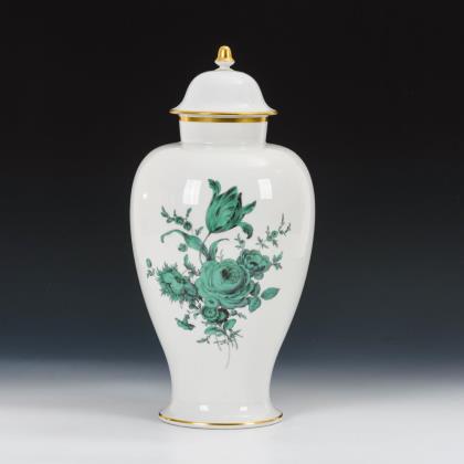 Deckelvase mit kupfergrüner Blumenmalerei