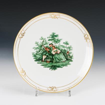 Wandteller mit grüner Watteaumalerei