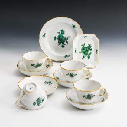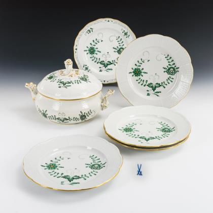 Speiseservice mit kupfergrüner Malerei