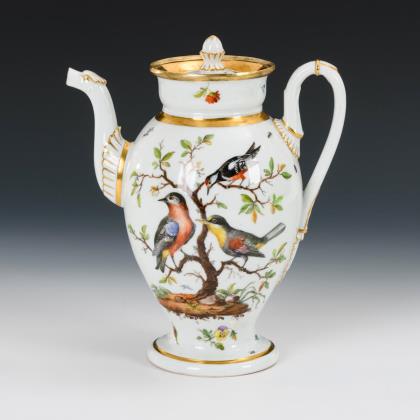 Kaffeekanne mit Vogelmalerei