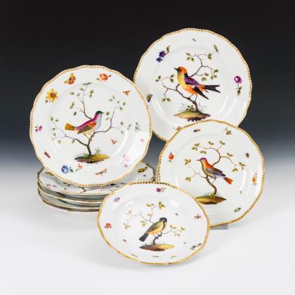 8 Teller mit Vogelmalerei