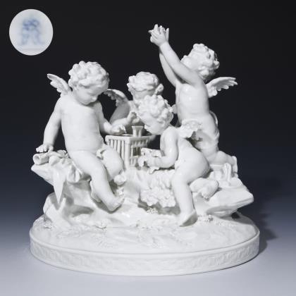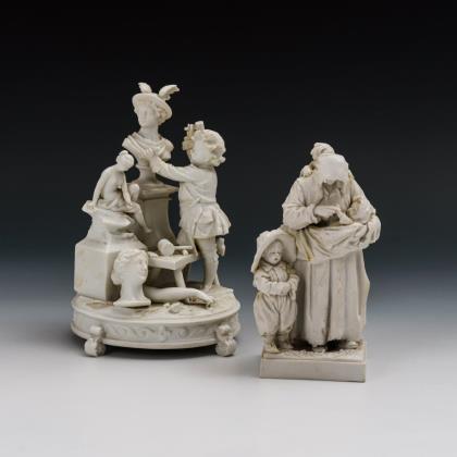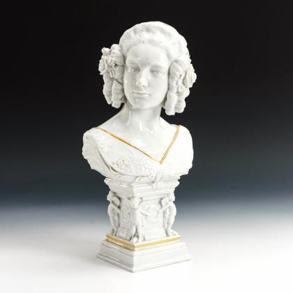 1x Knabenbüste, wohl des Prinzen Louis Charles de Bourbon, Entwurf von Johann Joachim Kaendler für die Porzellanmanufaktur Meissen (H 13,5 cm). / 1x mythologische Figurengruppe (H 12 cm)