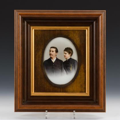 Ovale Platte mit der fein gemalten Darstellung eines jungen Ehepaares