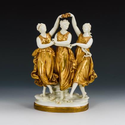 Drei tanzende junge Frauen mit Lorbeerkranz